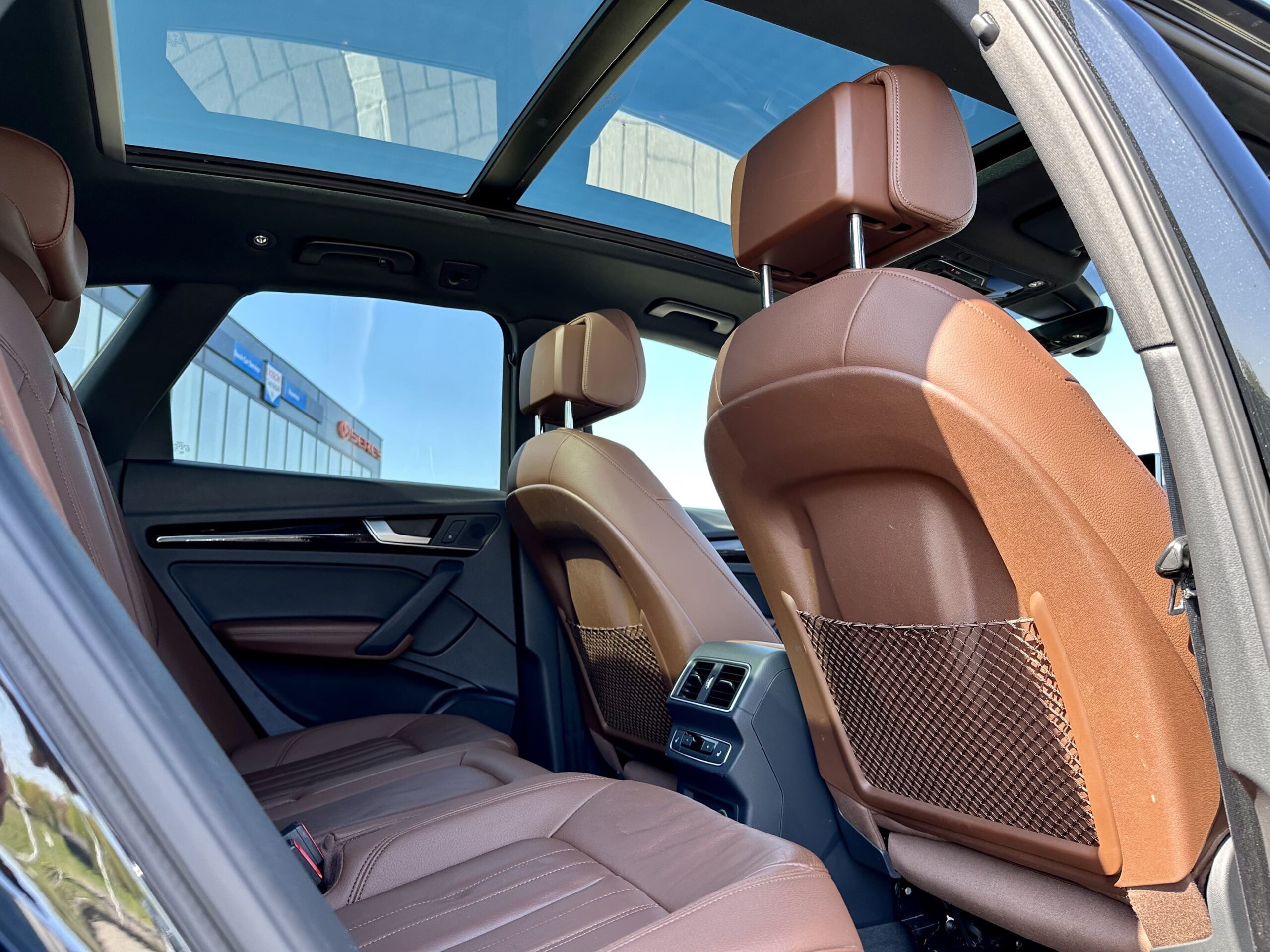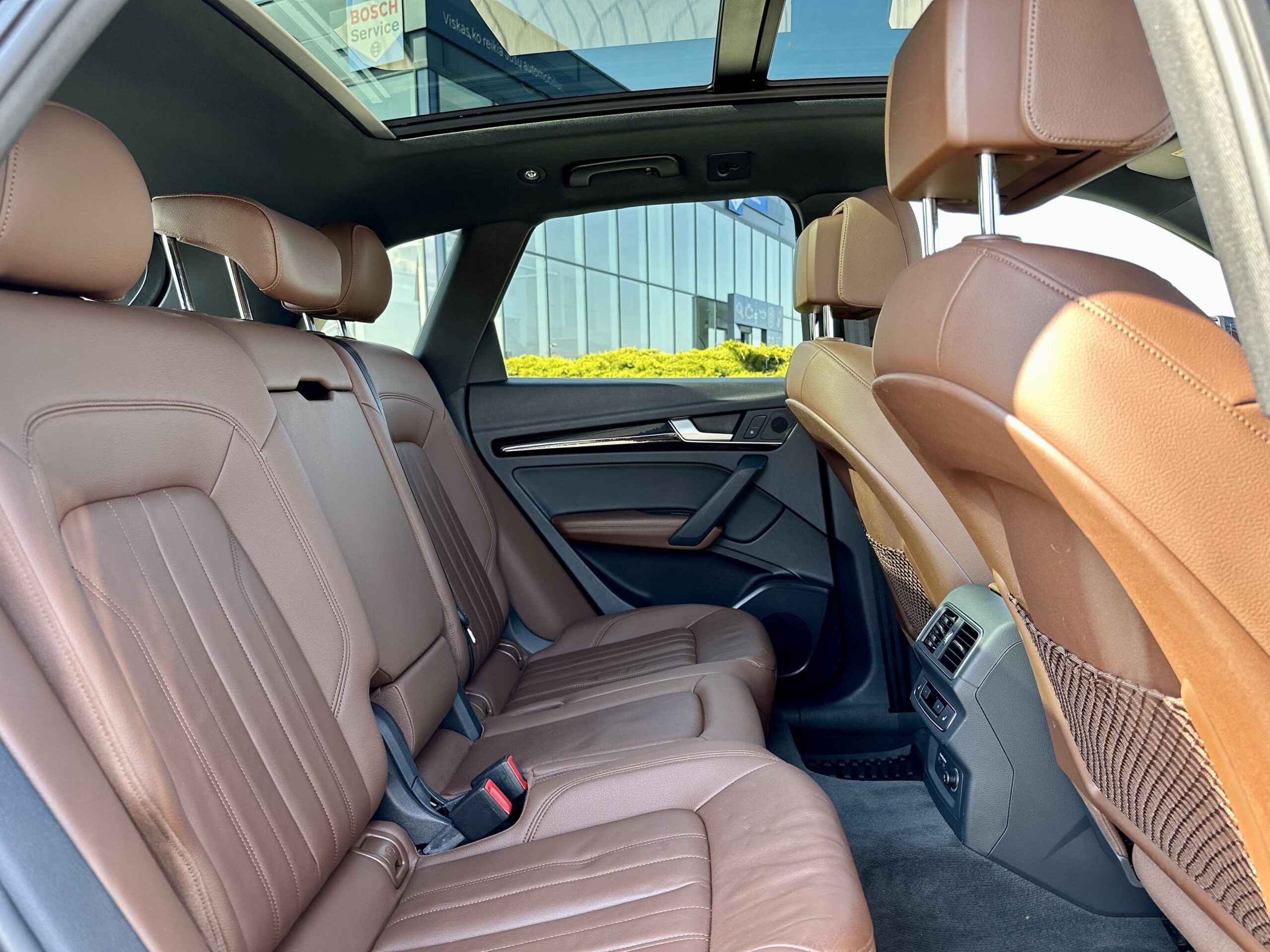 Elevate your adventure with our stunning Audi Q5. Boasting a chic Mythos black metallic exterior, sumptuous Nougat brown leather interior, and a powerful 2-liter turbo petrol engine, this pristine vehicle is your ultimate travel companion. Indulge in unmatched comfort with heated seats, a panoramic roof, and a heated steering wheel. Navigate effortlessly with the virtual cockpit and LED headlights. Trust in top-notch safety features like Audi side assist, parking system with rear camera, and 20-inch wheels.