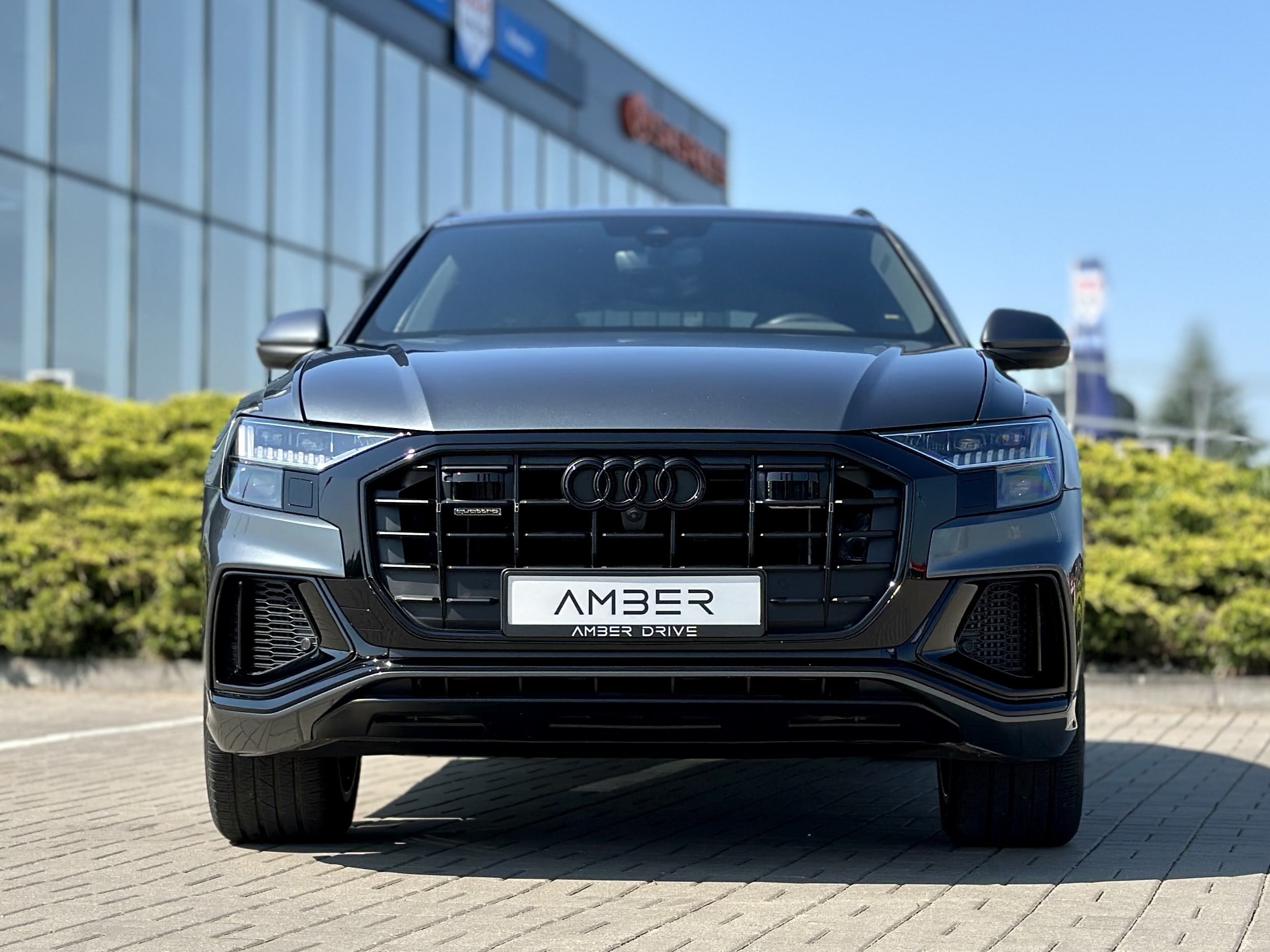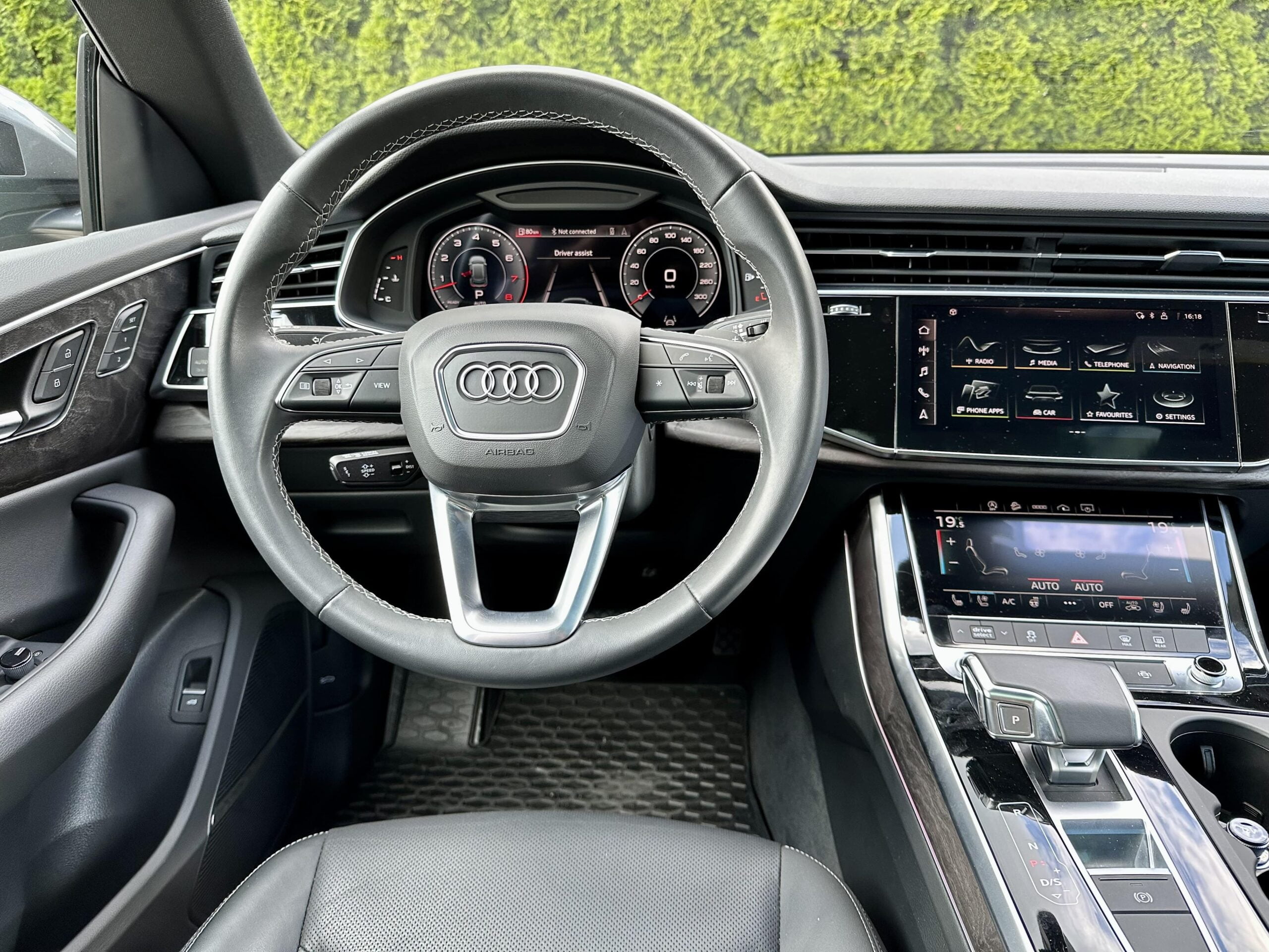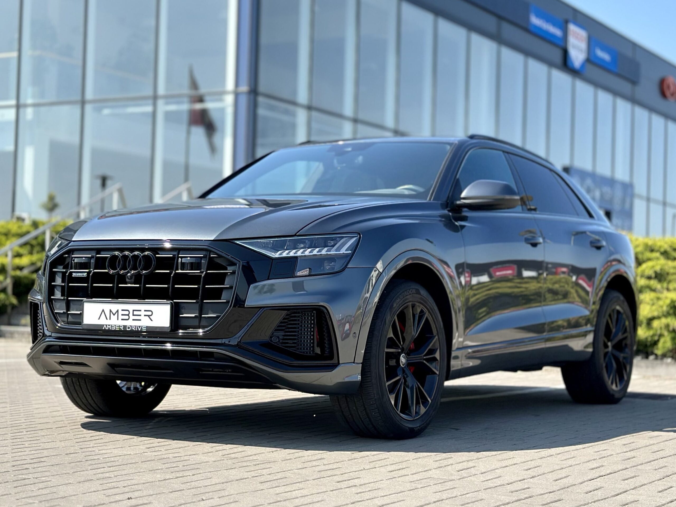 Experience luxury and power like never before with the Audi Q8 55 TFSI. Featuring a sleek Daytona Grey exterior and black leather interior, this impressive car is packed with premium features such as a Bang & Olufsen 3D sound system, premium Matrix LED headlights, adaptive cruise assist, and 4-zone climate control.