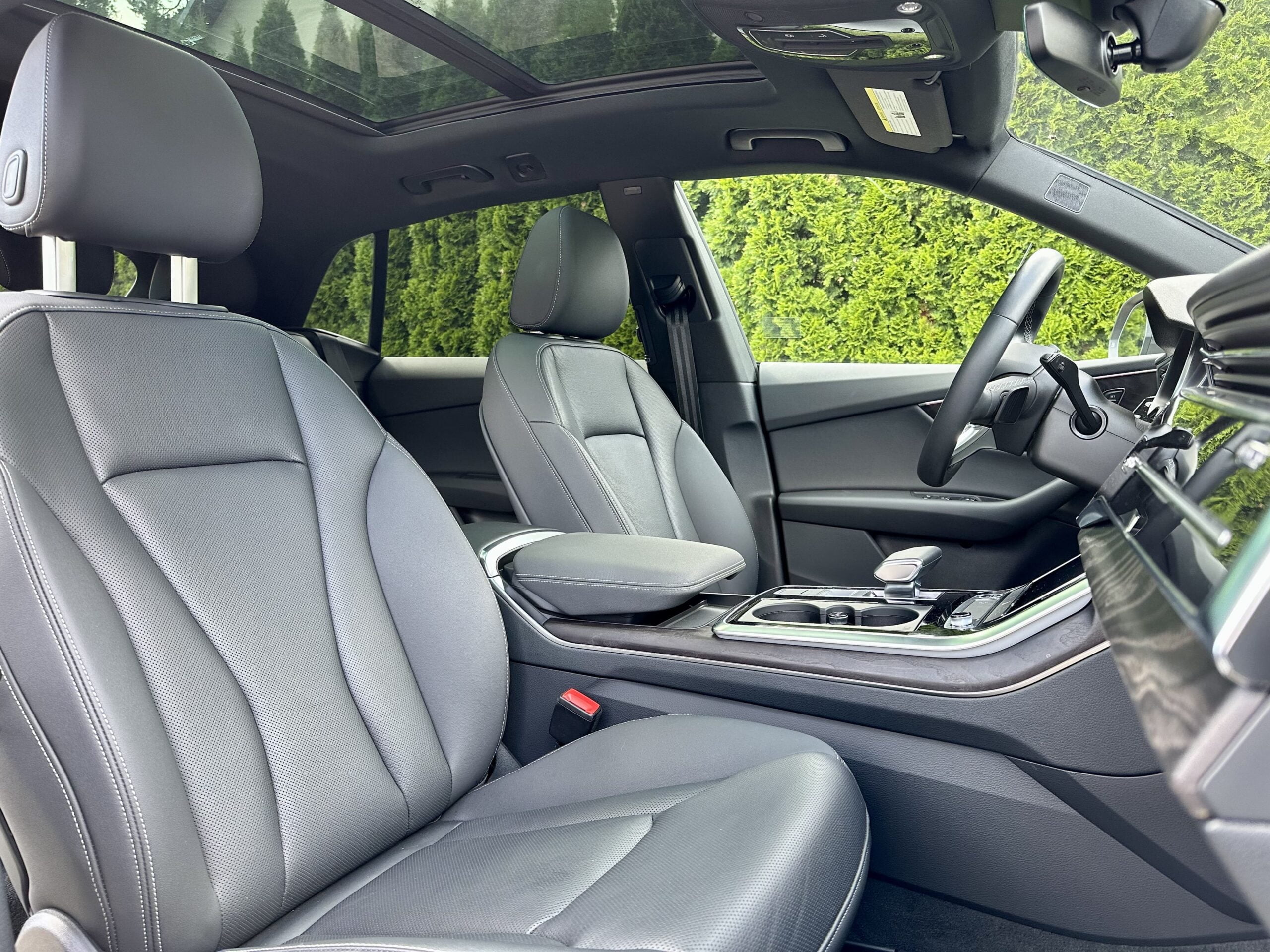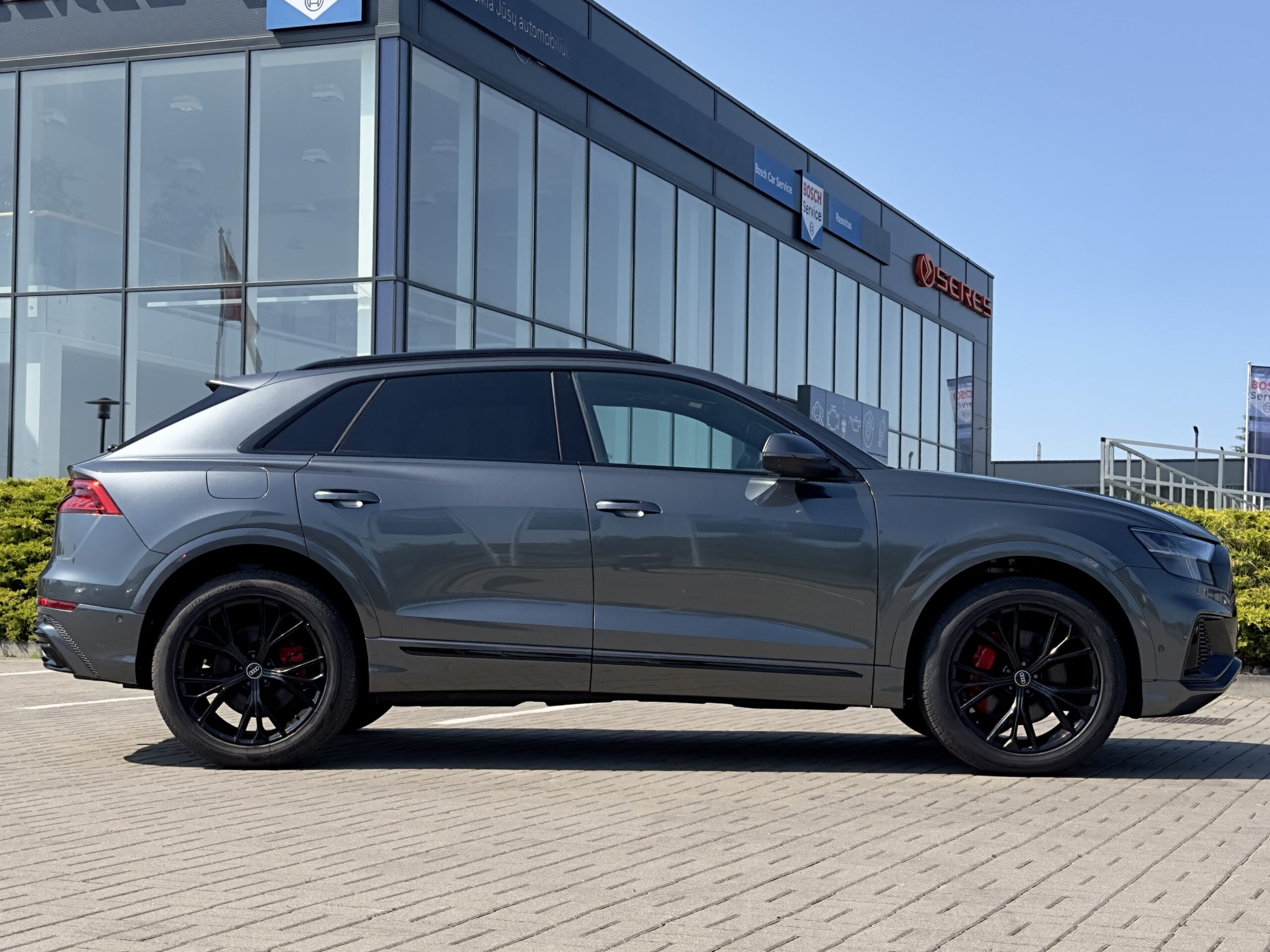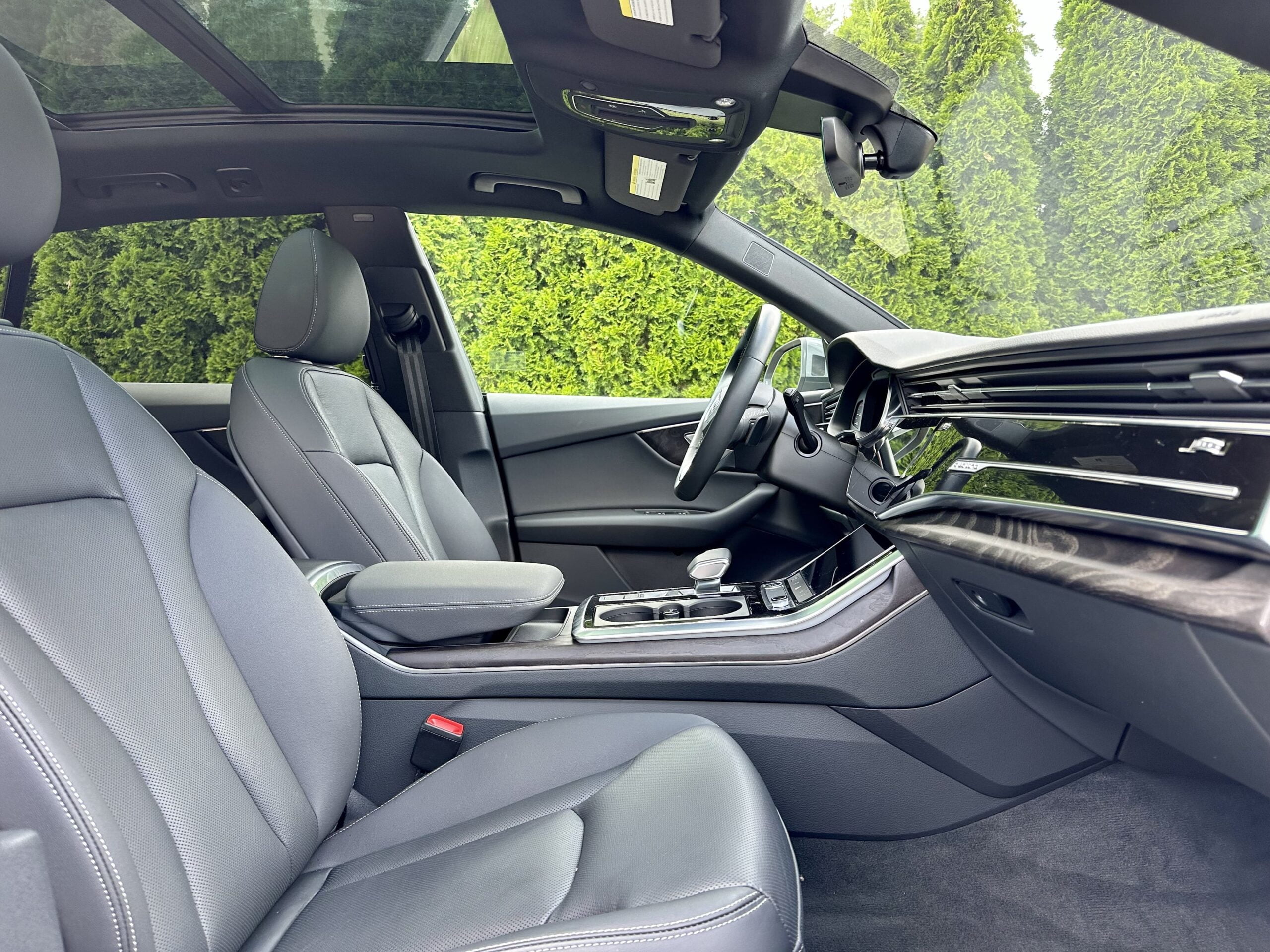 Experience luxury and power like never before with the Audi Q8 55 TFSI. Featuring a sleek Daytona Grey exterior and black leather interior, this impressive car is packed with premium features such as a Bang & Olufsen 3D sound system, premium Matrix LED headlights, adaptive cruise assist, and 4-zone climate control.