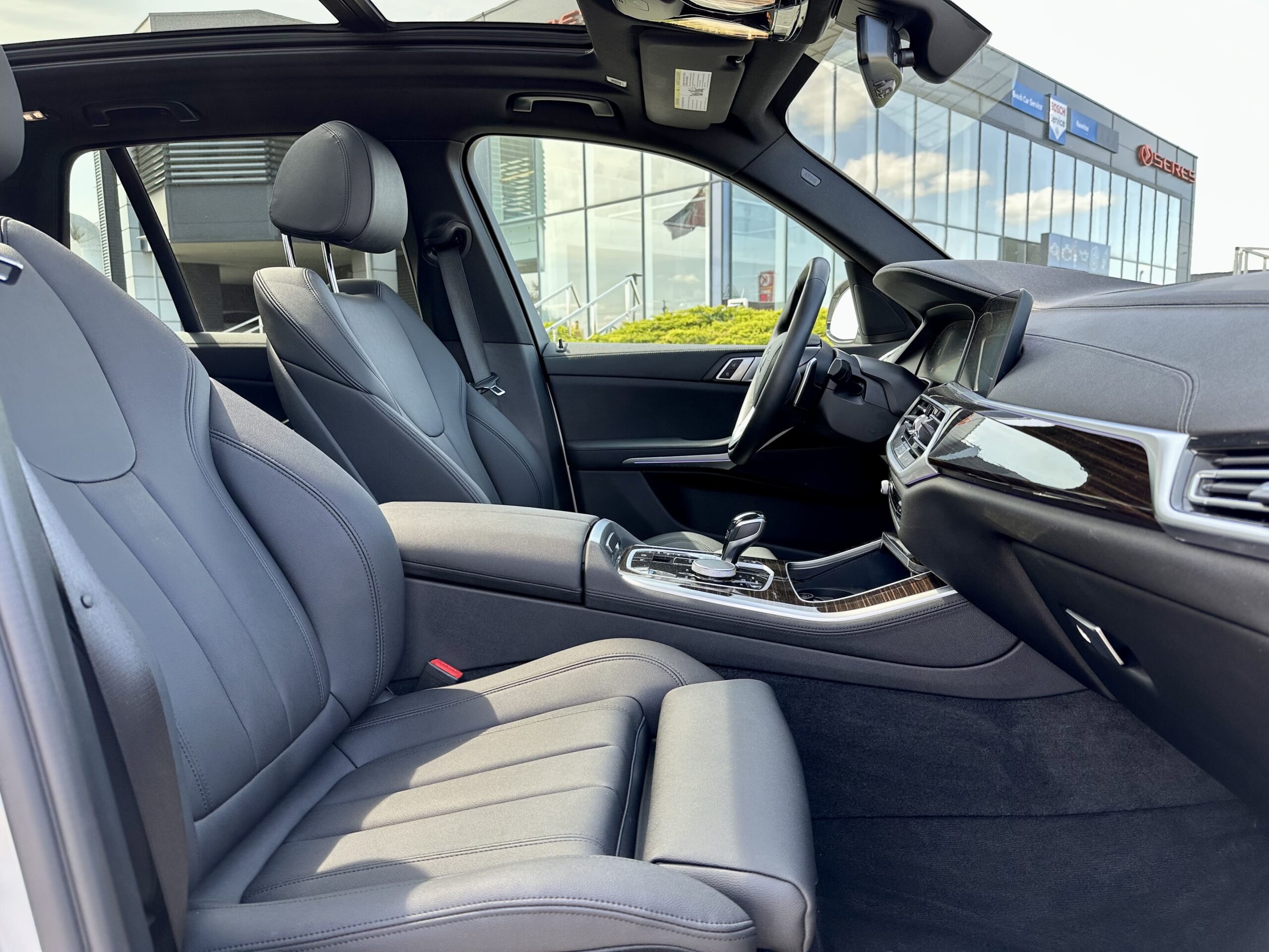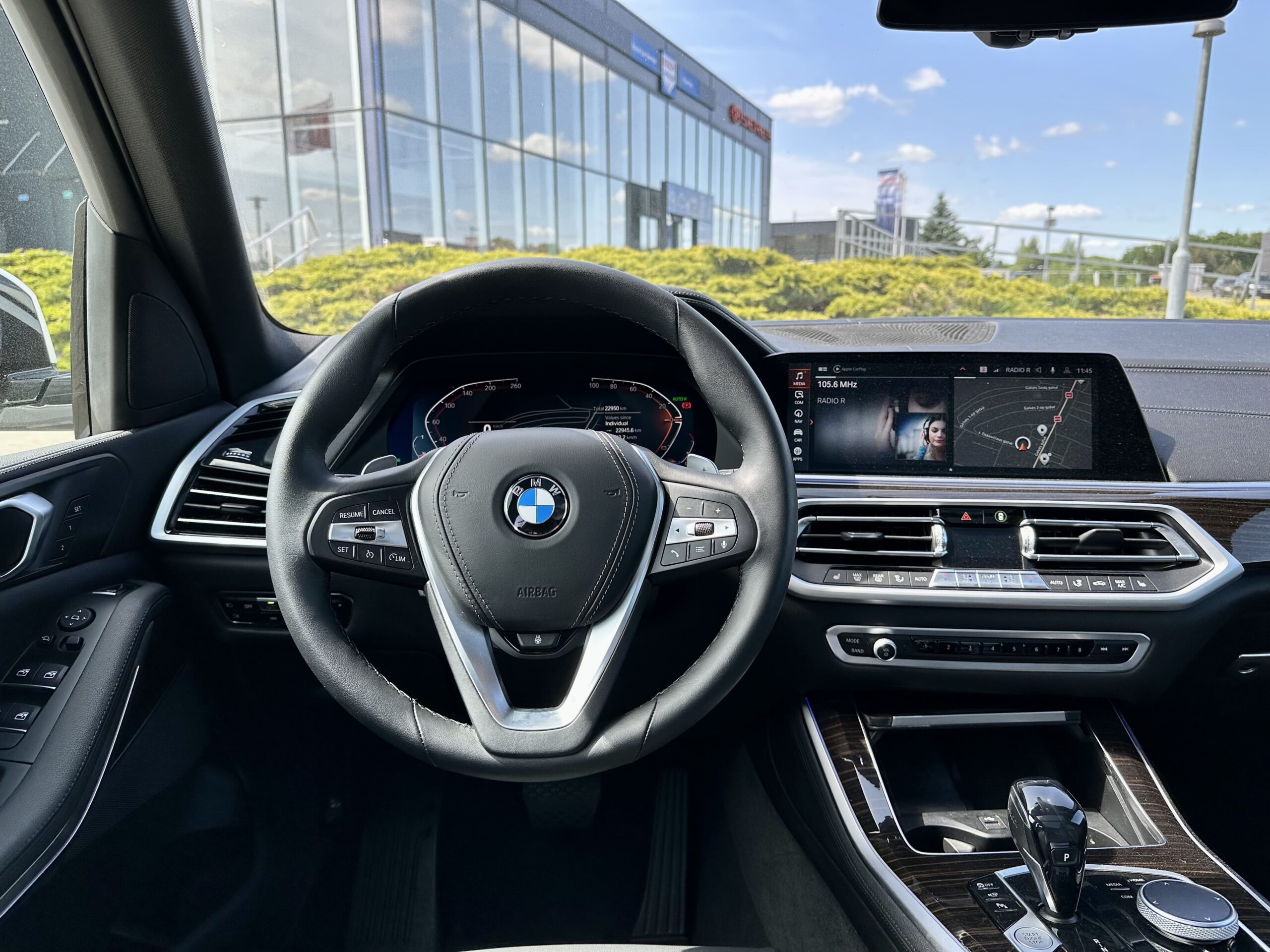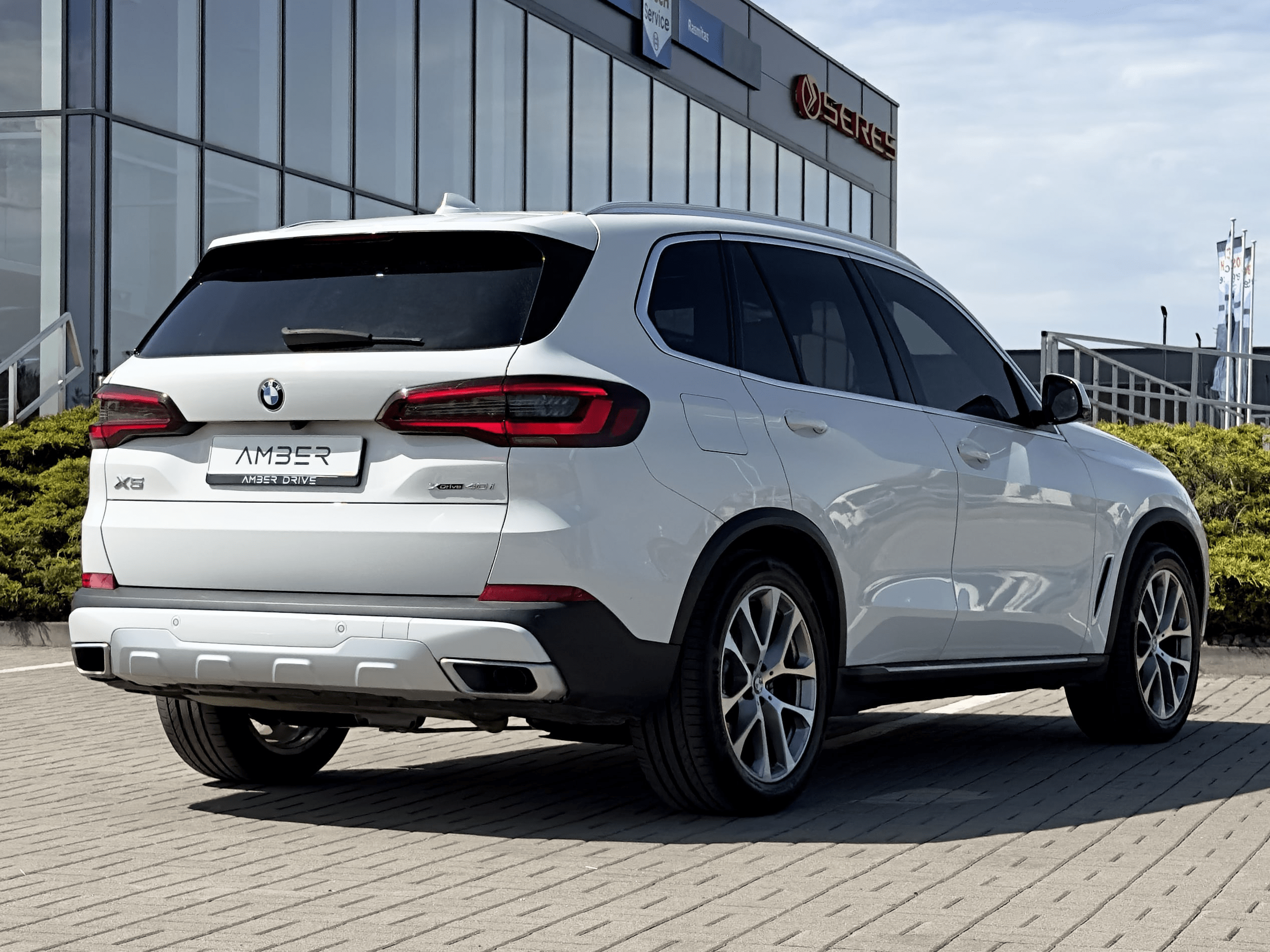 Experience the BMW X5 40i xDrive, a sleek SUV in Alpine White with black leather. Its 3.0L turbo petrol engine combines power and economy. Enjoy a cozy ride with heated seats, 4-zone climate control, and a panoramic roof. Stay connected and park effortlessly with Apple CarPlay, wireless charging, and 360-degree cameras.